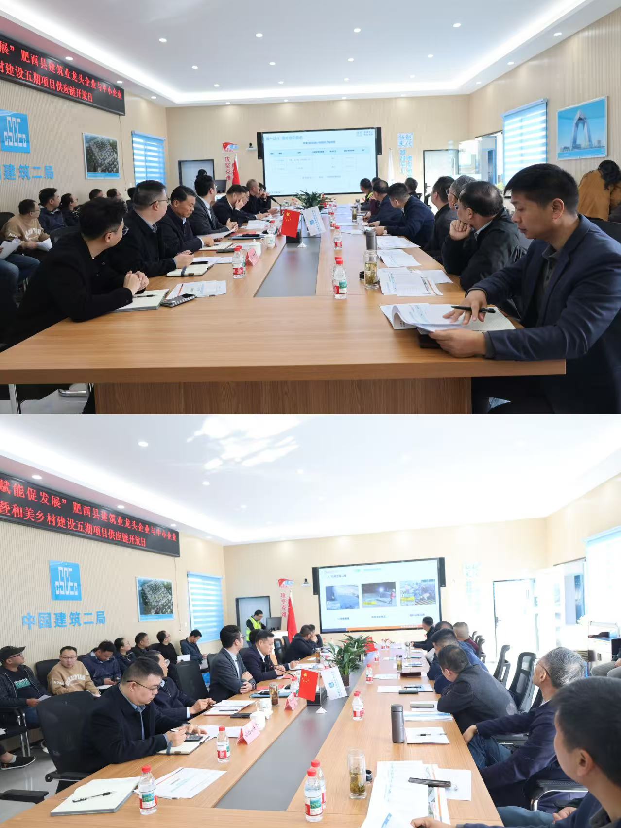 在项目需求发布环节,中建二局安徽公司与合肥神舟建筑集团有限公司重点发布了和美乡村建设五期项目的具体招采需求,涵盖外粉、真石漆、外墙保温工程,门窗工程,机电工程,消防工程,智能化及三网合一等多个专业分包领域,为本地中小企业提供了明确的合作方向。